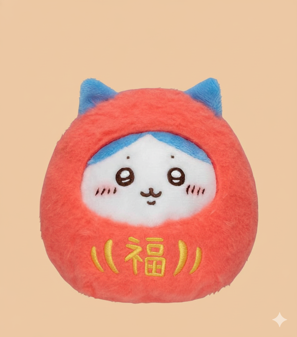 - Features Chiikawa in a traditional Daruma doll design, symbolizing luck and resilience